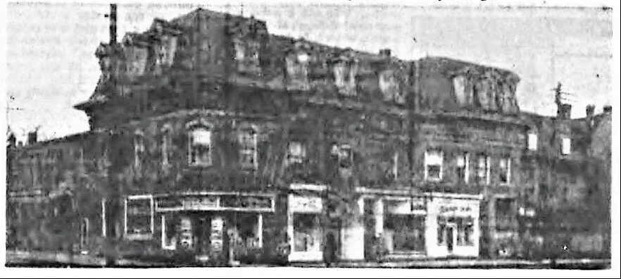 Examiner, April 10, 1946, p.9. The “Robinson Block” on the northeast corner of Charlotte and Aylmer, as it appeared in 1946. The Empire Theatre had been in the slightly indented building on the far right. The owner Robinson was born in the upstairs flat on the corner. The southeast corner of Charlotte and Aylmer was called “Robinson’s Corner.”